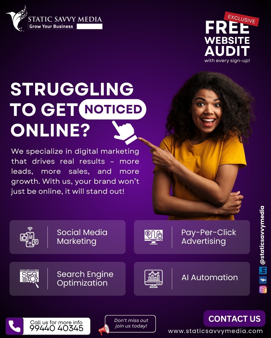 Is your business ready to shine in Madurai? At Static Savvy Media, we specialize in crafting high-converting websites and SEO strategies that attract…